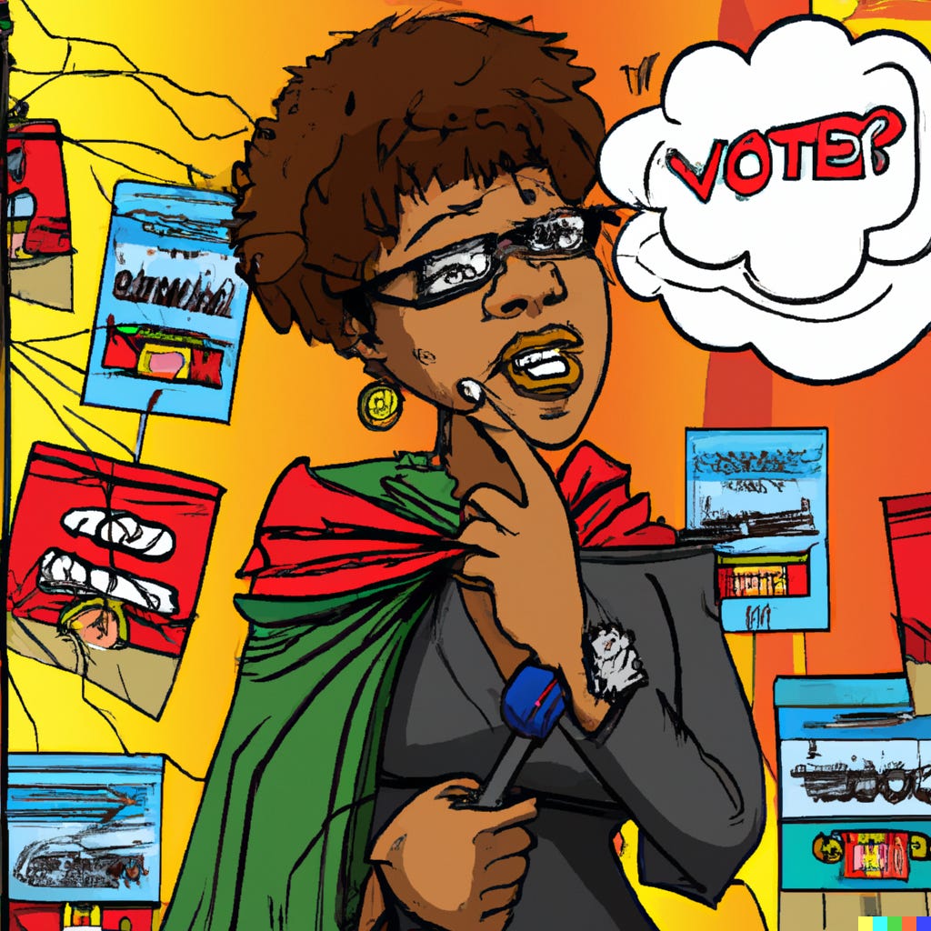 “This is the most important election of our lifetimes.” I learned that from the Twitter feed of a twenty-year-old college student with a perfectly angled selfie for her avatar. Perhaps she’s right. Perhaps the 2022 midterm election, like every national election before it, is indeed the most important election of “our” lifetimes. Perhaps the country is a speeding car about to launch itself into the terrifying void above a ravine, to be pulled to an inescapable end of twisted metal and tangled body parts splattered on the rock below. Perhaps we’re all stuck in the backseat, shouting, groping, elbowing each other over control of the wheel before it’s too late. Perhaps every rubber revolution is a step closer to certain death; the next battle always the most vital by virtue of the vanishing road ahead.